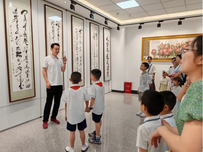 在讲解员的带领下,小朋友们有序参观了任玉岭收藏及作品展览馆,感受书画作品的独特魅力。